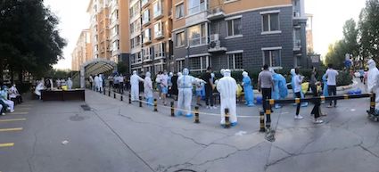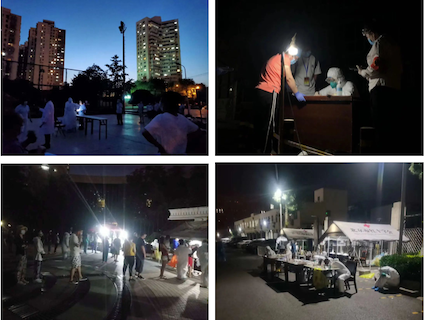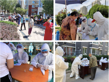紧张有序的采样现场,随处可见博奥工作人员的忙碌身影,接连几日,从上午7、8点不断忙碌到凌晨4、5点,37度的高温下,数百名博奥人始终坚守一线。