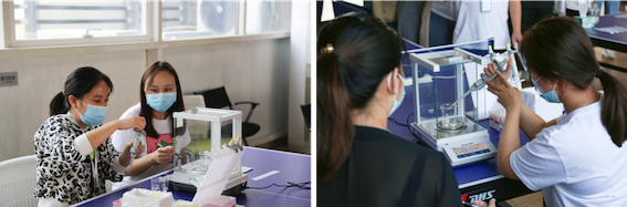 此次技能大赛共有来自科学生命服务部、医学服务部、科研管理中心研发一部和研发二部、HLA服务部和实验诊断部等部门共168名员工报名参加,比赛分为笔试与实操两部分。笔试是基础,只有掌握扎实的实验室规章制度和管理、生物安全、仪器操作注意事项等基础知识,才能练就过硬的专业技能。今年笔试部分增加了新型冠状病毒相关题目,结合疫情防控需要,强化相关检测安全知识。实操部分将理论与实践相结合,考验实验员移液器操作技能:分别取3次液体进行称量,考核移液器使用的重复性、准确性及仪器操作是否规范,着眼业务能力和熟练程度比拼。