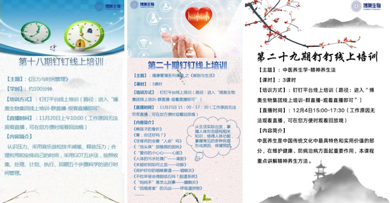 与此同时,博奥专注员工情志调理,关心员工心理健康,召开各类培训、解压和知识分享体验活动,让大家在工作之余进行放松的同时学习健康管理方面的知识,缓解员工工作压力,丰富员工生活。