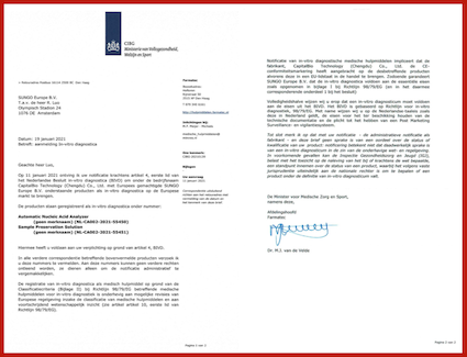 近期,博奥晶典联合清华大学成功研发的由新型冠状病毒2019-nCoV核酸检测试剂盒(全集成碟式芯片法),英文名称:SARS-CoV-2 Nucleic Acid Detection Kit (Integrated Isothermal Amplification Chip Method)和全自动核酸分析仪,英文名称:Automatic Nucleic Acid Analyzer组成的全集成芯片实验室系统获CE准入资质(证书号:NL-CA002-2021-55957和NL-CA002-2021-55450),获CE准入资质表明该产品符合欧盟医疗器械相关指令的符合性要求,具备欧盟市场的准入条件,将为欧洲地区的新冠疫情防控工作给予高灵敏度全集成快速检测工具。