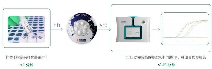 全集成芯片实验室采用全新一代的芯片实验室技术(Lab-on-a-chip),集核酸提取、纯化、扩增、检测及结果分析功能于一体,真正意义上实现了“样本进-结果出”的检测。使用时,只需将待检样本加入芯片放入仪器,一键操作,配套智能软件控制仪器会自动执行全流程并直接报告检测结果。