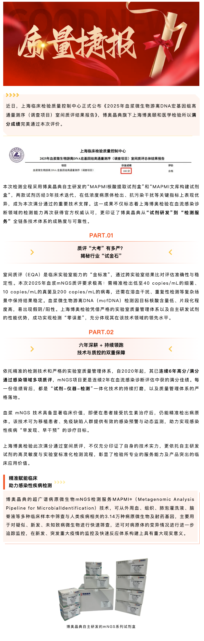 品质加冕!博奥晶典旗下上海博奥检验满分顺利获得2025年血浆mNGS室间质评